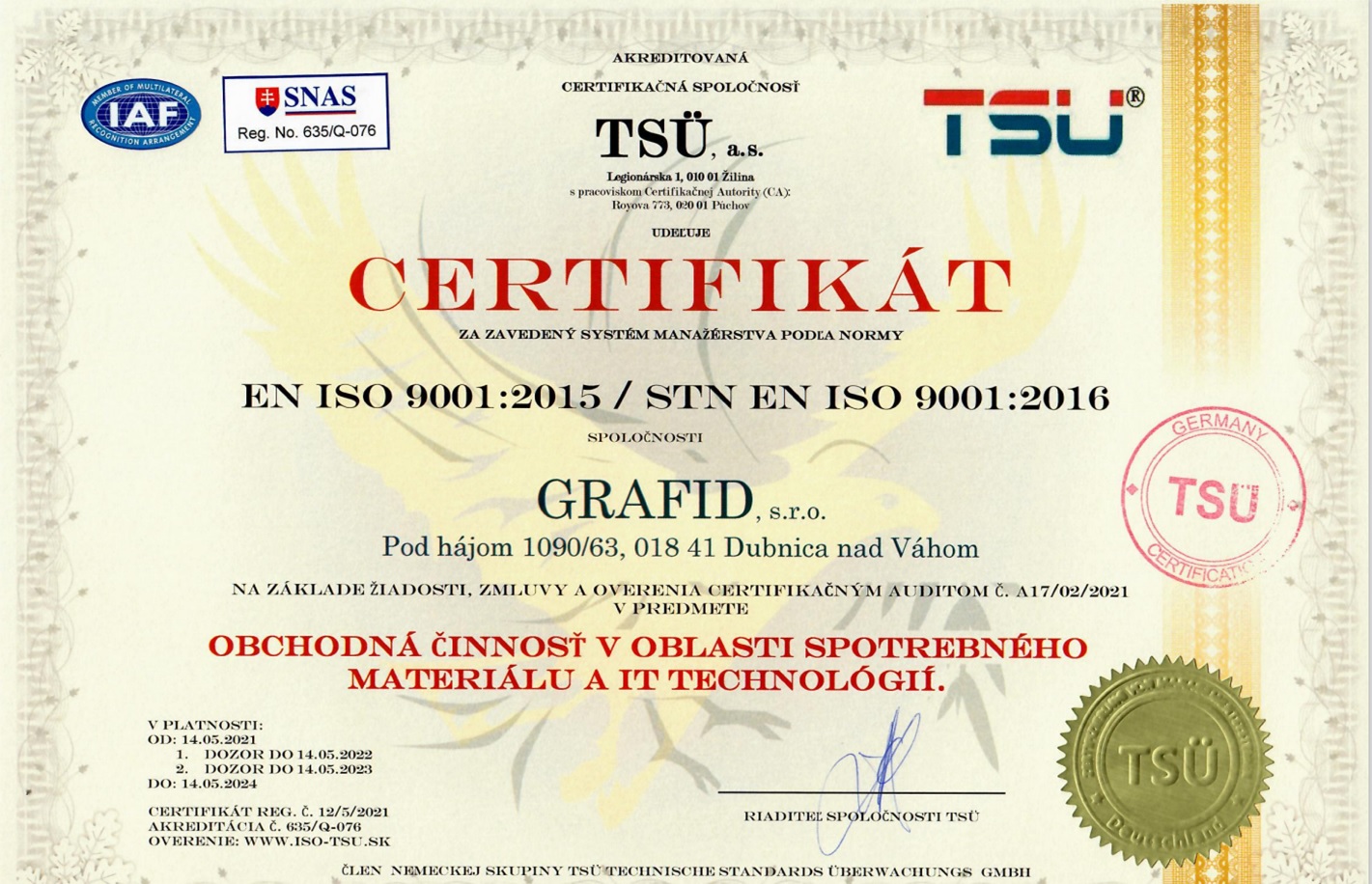 „ GRAFID je pre mňa spoľahlivý partner“. Tomu sa snažíme smerovať všetkých našich zamestnancov. Naši obchodníci sú Vám k dispozícii a sú pripravený reagovať na všetky Vaše podnety. Individuálny prístup našich obchodníkov k zákazníkovi zaručuje Vašu maximálnu spokojnosť.