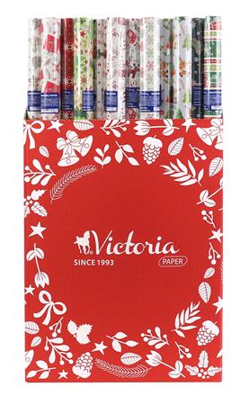 Baliaci papier, v hárkoch, 70x200 cm, 60 kotúčov, mix vianočných vzorov, VICTORIA PAPER