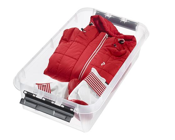 Úložný box, plastový, 31 l, čierne úchytky a kolieska, SMARTSTORE "Classic 35", priehľadný