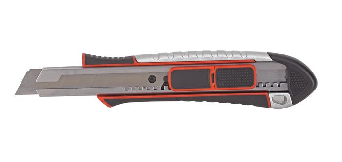Odlamovací nôž s funkciou automatického zaťahovania čepele - ABS plastový kryt odolný proti rozbitiu - jednoduchá výmena čepele bez použitia náradia - protišmyková pogumovaná rukoväť, farebne značené - možno zavesiť alebo upevniť - fixovateľné na 17 bodoch - záruka 2 roky