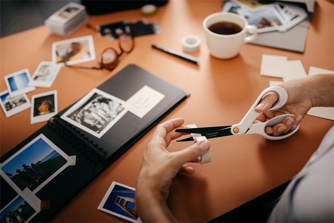 Nožnice, univerzálne, s nepriľnavým povrchom, 21 cm, FISKARS "Titanium", biela