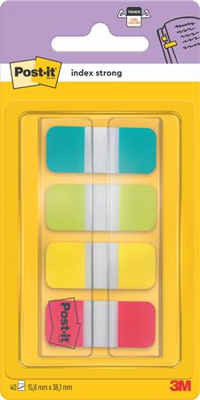 Záložky, plastové, zosilnené, 4x10 listov, 16x38 mm, 3M POSTIT, mix farieb