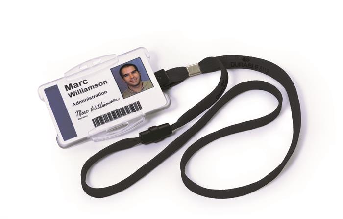 Šnúrka na krk, s klipom, DURABLE, čierna