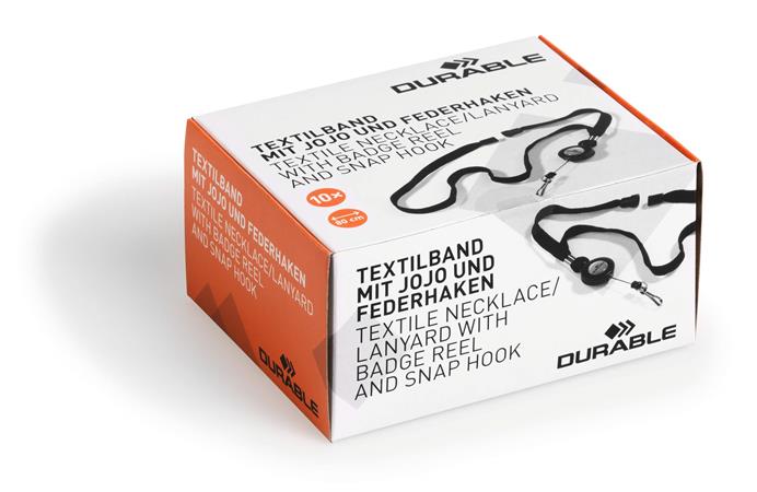 Hlavná stránkaKancelárske potrebyKancelárske doplnkyVisačky, menovkyZávesný remienok, výsuvný, s patentom, s kotúčom, DURABLE, čierna