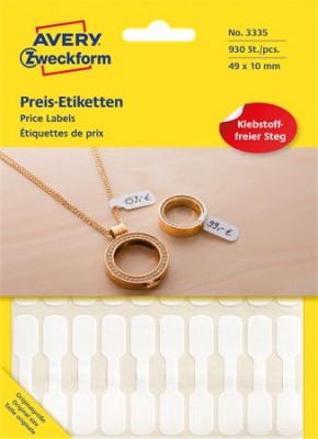 Biele cenocé etikety  AVERY ZWECKFORM. ideálne na ručné popisovanie – rýchle a jednoduché použitie -vhodné na označovanie cien bez použitia tlačiarne -balenie: 930 etikiet/bal -tvar piškóty