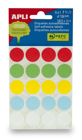 Etikety, okrúhle, priemer: 19 mm, ručne popisovateľné, farebné, APLI, mix farieb, 100 etikiet/bal