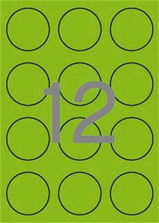 Etikety, okrúhle, priemer: 60 mm, farebné, APLI, neónové zelené, 240 etikiet/bal