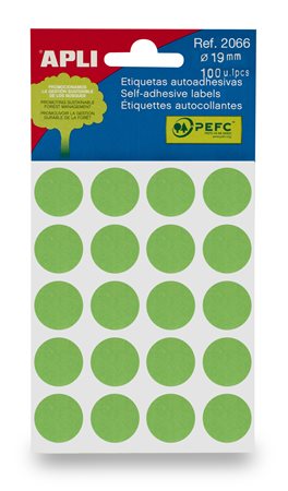 Etikety, okrúhle, priemer:19 mm, ručne popisovateľné, farebné, APLI, zelené, 100 etikiet/bal