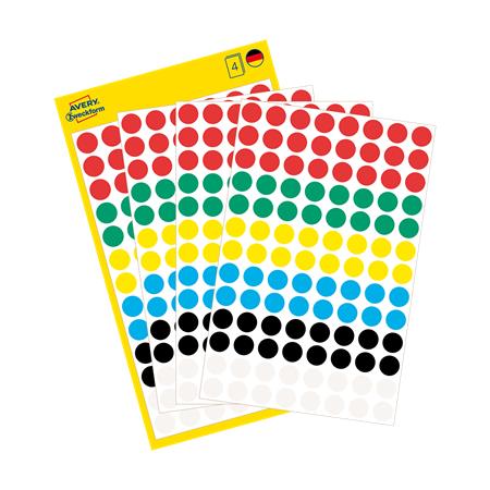 Etikety, pkrúhle, priemer: 8 mm, AVERY ZWECKFORM, 5 rôznych farieb, 416 etikiet/bal