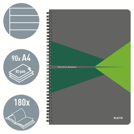 Blok, A4, linajkový, 90 listov, PP obálka, LEITZ "Office", sivá-zelená