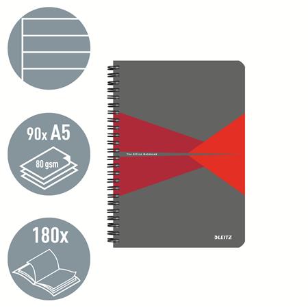Blok, A5, linajkový, 90 listov, laminovaná kartónová obálka, LEITZ "Office", sivá-červená