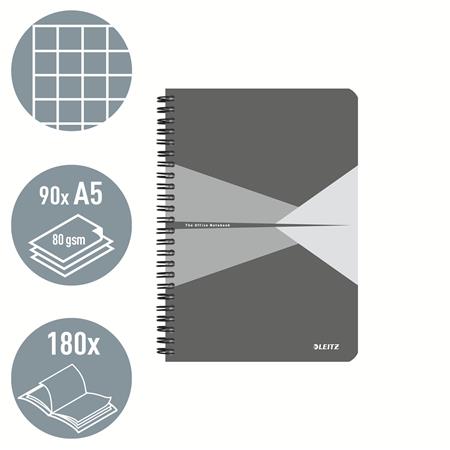 Blok, A5, štvorčekový, 90 listov, laminovaná kartónová obálka, LEITZ "Office", sivá
