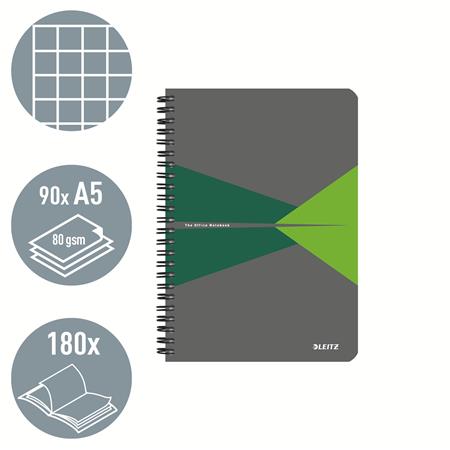 Blok, A5, štvorčekový, 90 listov, laminovaná kartónová obálka, LEITZ "Office", sivá-zelená