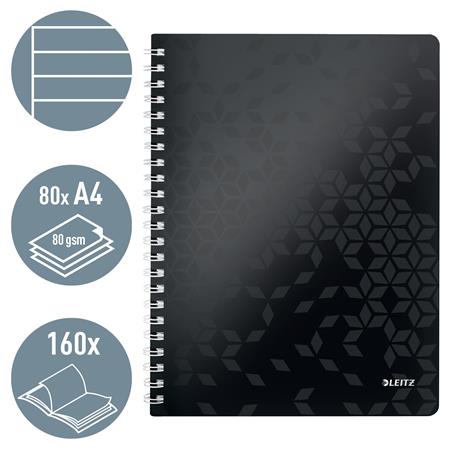 Špirálový zošit, A4, linajkový, 80 listov, LEITZ "Wow", čierna