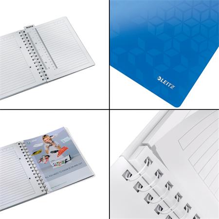 Špirálový zošit, A5, linajkový, 80 listov, LEITZ "Wow", modrá