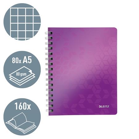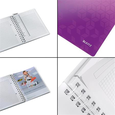 Špirálový zošit, A5, štvorčekový, 80 listov, LEITZ "Wow", fialový