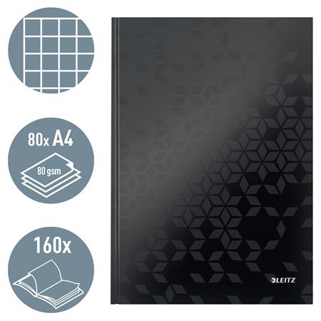 Záznamová kniha, A4, štvorčeková, 80 listov, tvrdá obálka, LEITZ "Wow", čierna