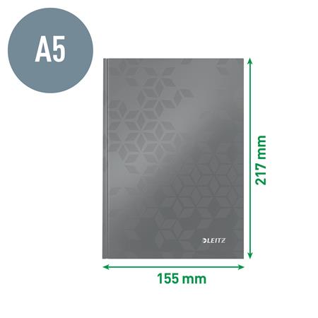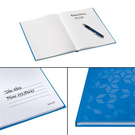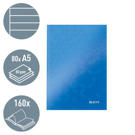 Záznamová kniha, A5, linajková, 80 listov, tvrdá obálka, LEITZ "Wow", modrá