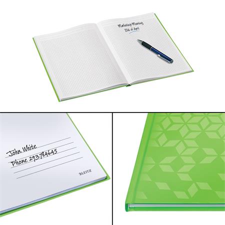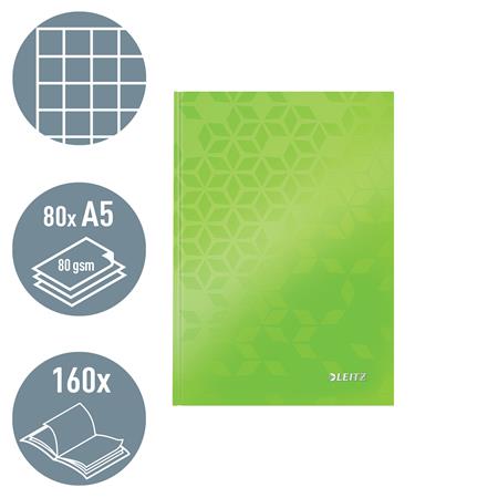Záznamová kniha, A5, štvorčeková, 80 listov, tvrdá obálka, LEITZ "Wow", zelená