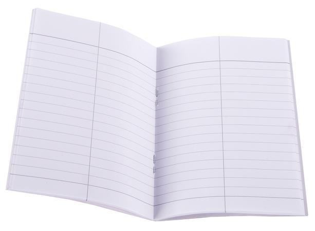 slovníkový zošit, linajkový, každá strana je rozdelená na dve polovice pre slovíčka