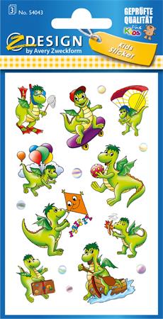 Nálepky, papier, 3 hárky, 76x120 mm,  AVERY ZWECKFORM, "Z-Design No.54043", draky