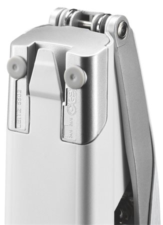 Pevná a spoľahlivá celokovová zošívačka. V dômyselných farbách radu Leitz Style, povrch v dizajne brúsenej ocele a s patentovanou zošívacou technológiou. Základňa z kovu, rameno kov/plast. Protišmykové plastové dno proti poškodeniu nábytku.