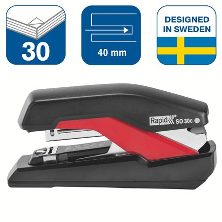 Zošívačka, 30 listov, RAPID "Supreme SuperFlatClinch S030c", čierna/červená