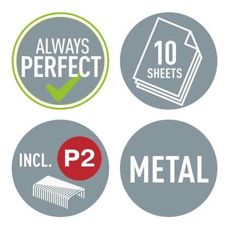 Zošívačka a dierovačka, set, 10 listov, kovový, LEITZ "Wow Mini", modrá