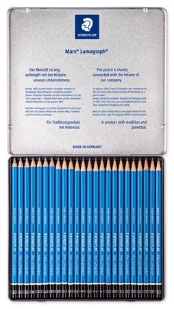 Grafitová ceruzka, sada, v kovovej krabičke, šesťhranná, STAEDTLER "Mars® Lumograph® 100", 24 rôznych tvrdostí