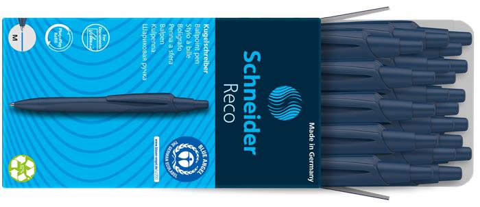 Guľôčkové pero, 0,5 mm, SCHNEIDER "Reco M", modrá, s náplňou 0,5 mm,"Eco 725 M", modrá