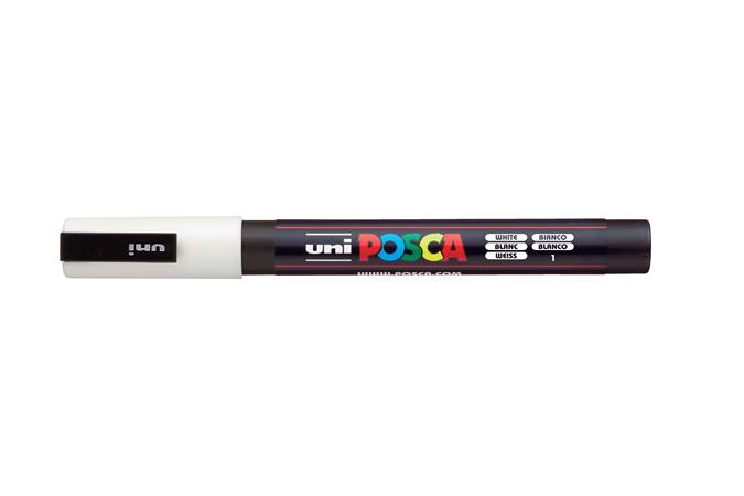 Dekoračný popisovač, 0,9-1,3 mm, UNI "Posca PC-3M", biely