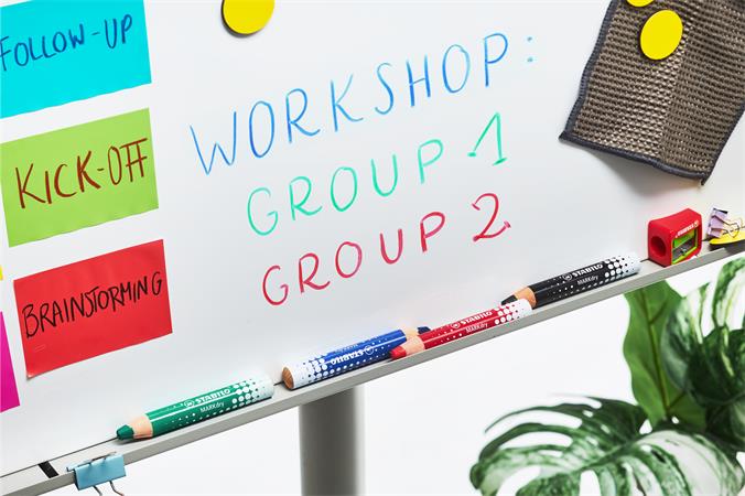 - STABILO MARKdry je suchý popisovač s hrubou farebnou tuhou na biele tabule a flipcharty