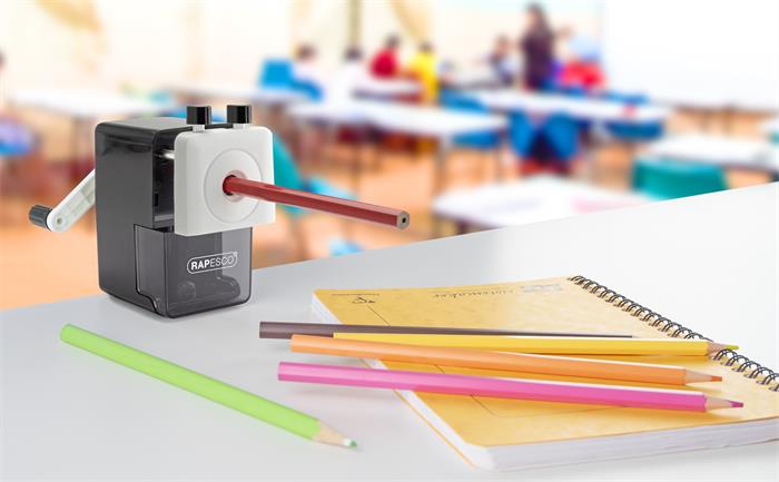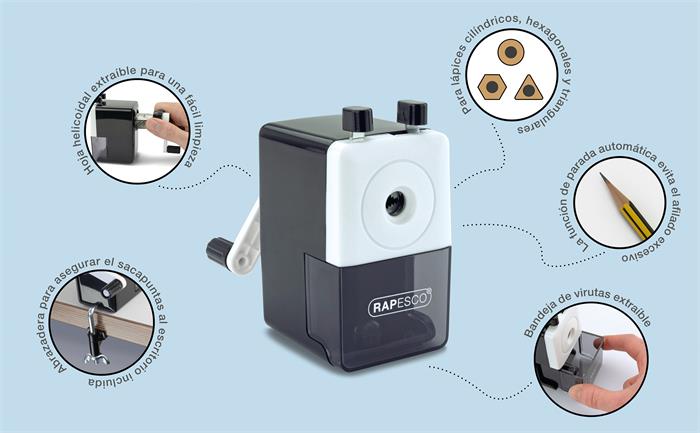 Stolné strúhadlo na ceruzky Rapesco 64 je štýlové, vysoko funkčné strúhadlo s mnohými funkciami