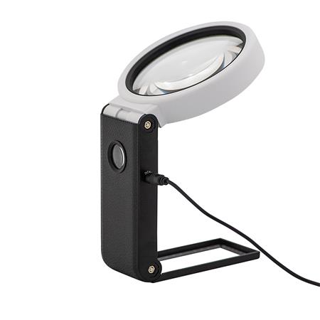 Praktická lupa s veľkým zorným poľom a LED osvetlením, ručná a stolná lupa v jednom. Kvalitná akrylová šošovka s priemerom 9 cm poskytuje 2,5-násobné zväčšenie a malá prídavná šošovka s priemerom 1,9 mm poskytuje 10-násobné zväčšenie. Ideálne do domácnosti alebo ako hobby doplnok. Všetky malé písmená, ako sú zložky na obale alebo návod na použitie, sa stanú ľahko čitateľnými. Vstavané LED a UV svetlo poskytujú optimálne osvetlenie aj v tme. Pre hands-free použitie stačí rozložiť statív a nastaviť zväčšovaciu hlavu do požadovaného uhla. Vďaka tomu sa dajú ľahko a precízne vykonávať pedantné hobby a remeselné práce. - farba: biela/čierna - rozmer cca: 22,5 x 10,7 x 2,8 cm - s 3 1,5 V AAA batériami - s USB káblom