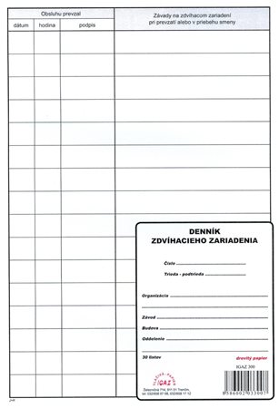 ?Denník zdvíhacieho zariadenia, A4-30l ist.