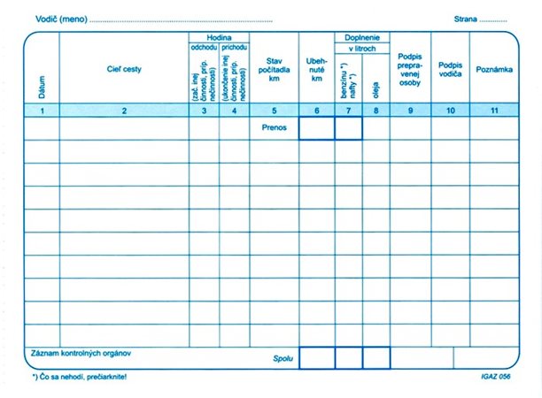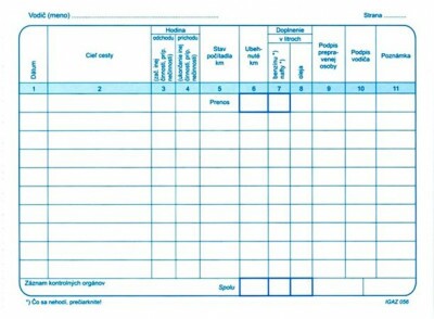 Hlavná stránkaKancelárske potrebyTlačiváTlačiváZáznam o prevádzke vozidla osobnej dopravy