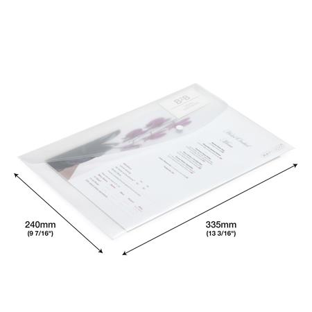 formát A4+ je ideálny v kancelárii, doma ale aj škole -pomocou predného držiaka na vizitku sa dá personalizovať-kapacita: 150 listov -držiak na pero pod obálkou -rozmery: 335 x 240 mm (š x v) -priehľadný