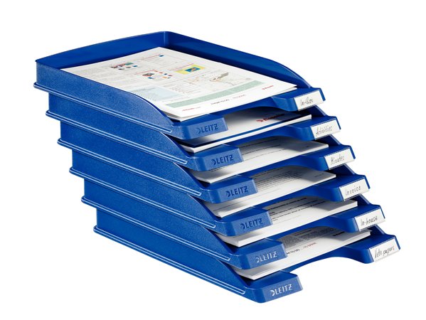 Odkladač, plastový, tenký, LEITZ "Plus", modrý