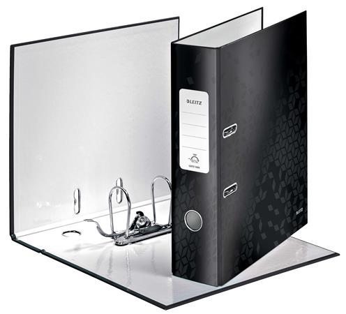 Pákový šanón, 80 mm, A4, kartón, LEITZ "180 Wow", čierna