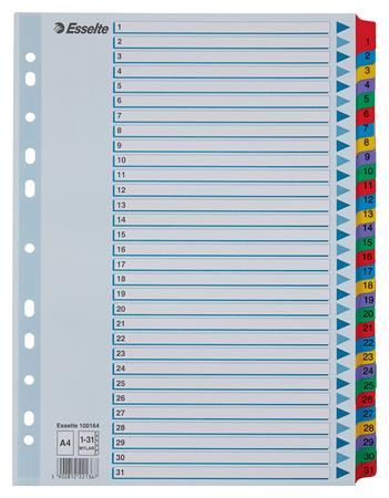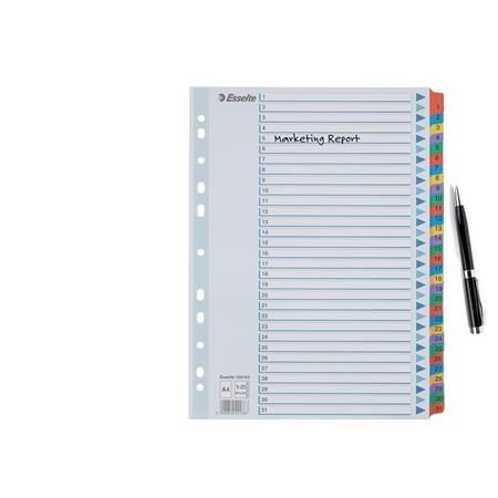 Register, kartón, A4, 1-31, ESSELTE "Mylar"