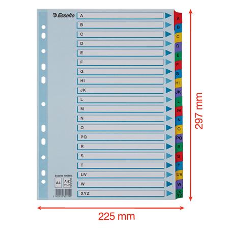 Register, kartón, A4, A-Z, ESSELTE, VIVIDA, biela