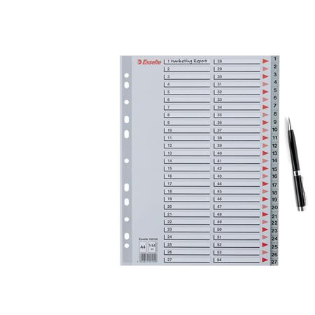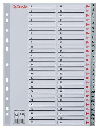 Register, plastový, A4, 1-54, ESSELTE, sivý