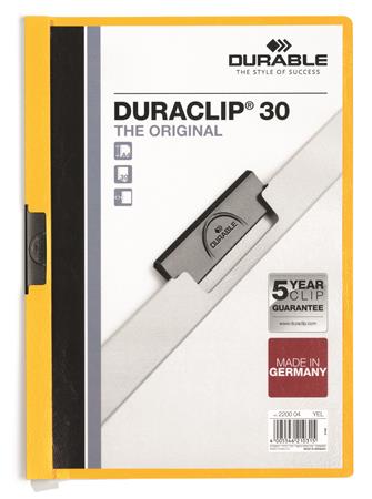 Rýchloviazač, s klipom, A4, DURABLE "DURACLIP® 30", žltá