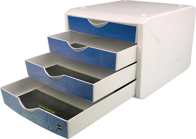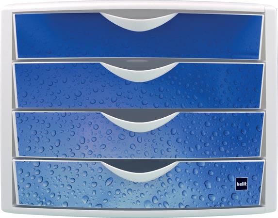 Zásuvkový box na dokumenty, plastový, 4 zásuvky, HELIT "Chameleon", biela-modrá