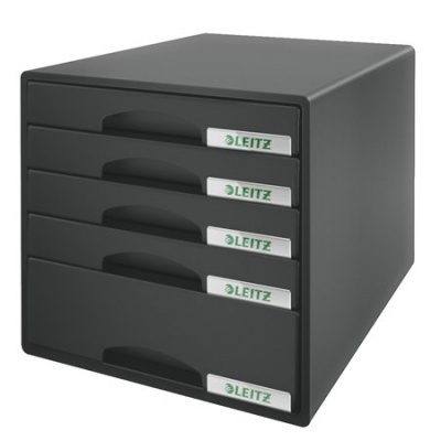 Zásuvkový box na dokumenty, plastový, 5 zásuviek, LEITZ "Plus", čierny
