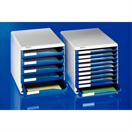 Zásuvkový box na dokumenty, plastový, 5 zásuviek, LEITZ "Standard", modrý