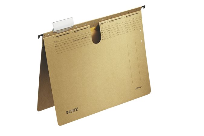 Závesná zakladacia doska, s rýchloviazacím mechanizmom, kartón, A4, LEITZ "Alpha", prírodná