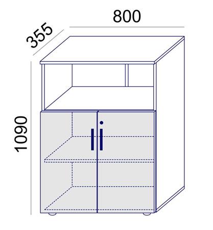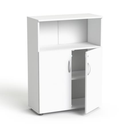 Kombinovaná skriňa, výška na 3 zakladače, s dverovou a otvorenou policovou časťou.