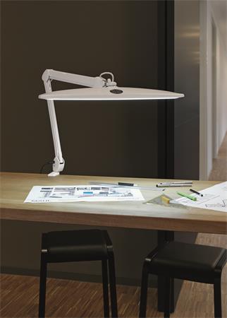 Stolová lampa, LED, nastaviteľná, s držiakom, MAUL "Work", biela