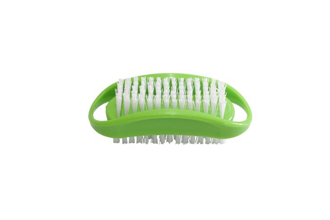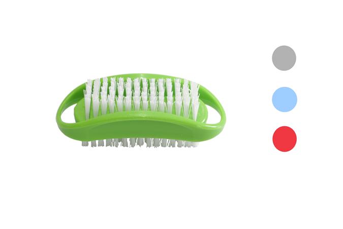 Plastová kefa na nechty so štetinkami na oboch stranách v rôznych farbách (fialová, červená, biela, zelená)